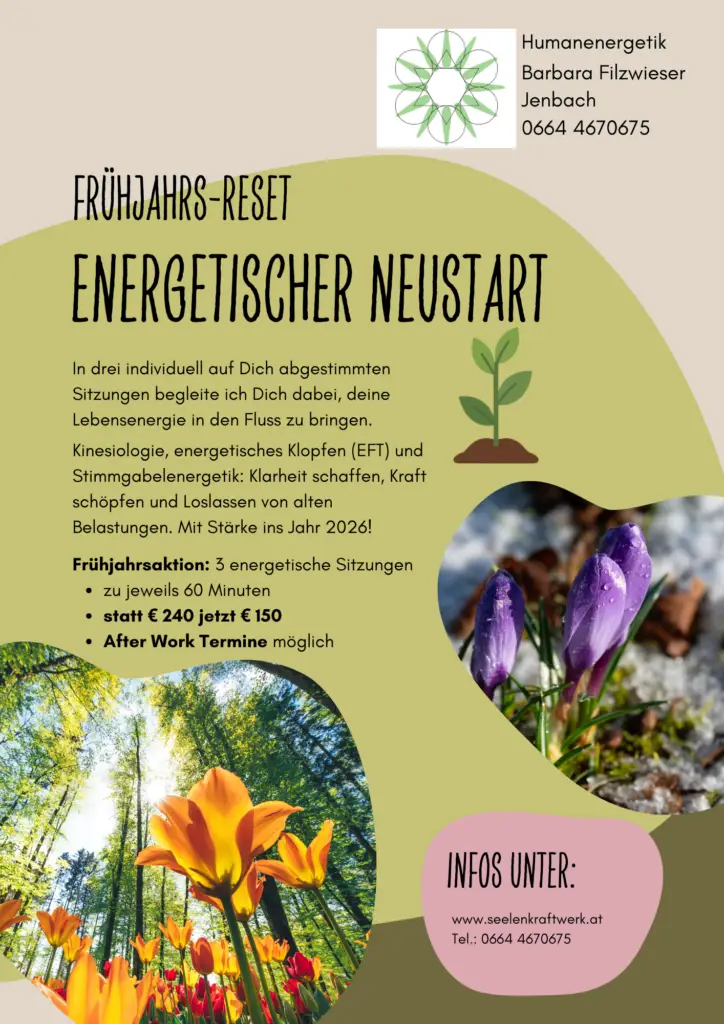 Hinweis: Alle angebotenen Leistungen verstehen sich als energetische Begleitung im Sinne der Humanenergetik. Es werden keine Heilversprechen abgegeben.